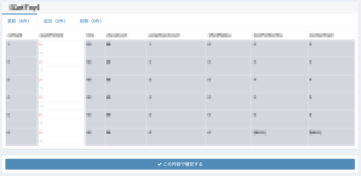 データ反映時には既にデータベースに反映されているデータとの差分を抽出・画面上で表示し、反映漏れや意図しない差分が発生していないかの確認を行えるようにしています。